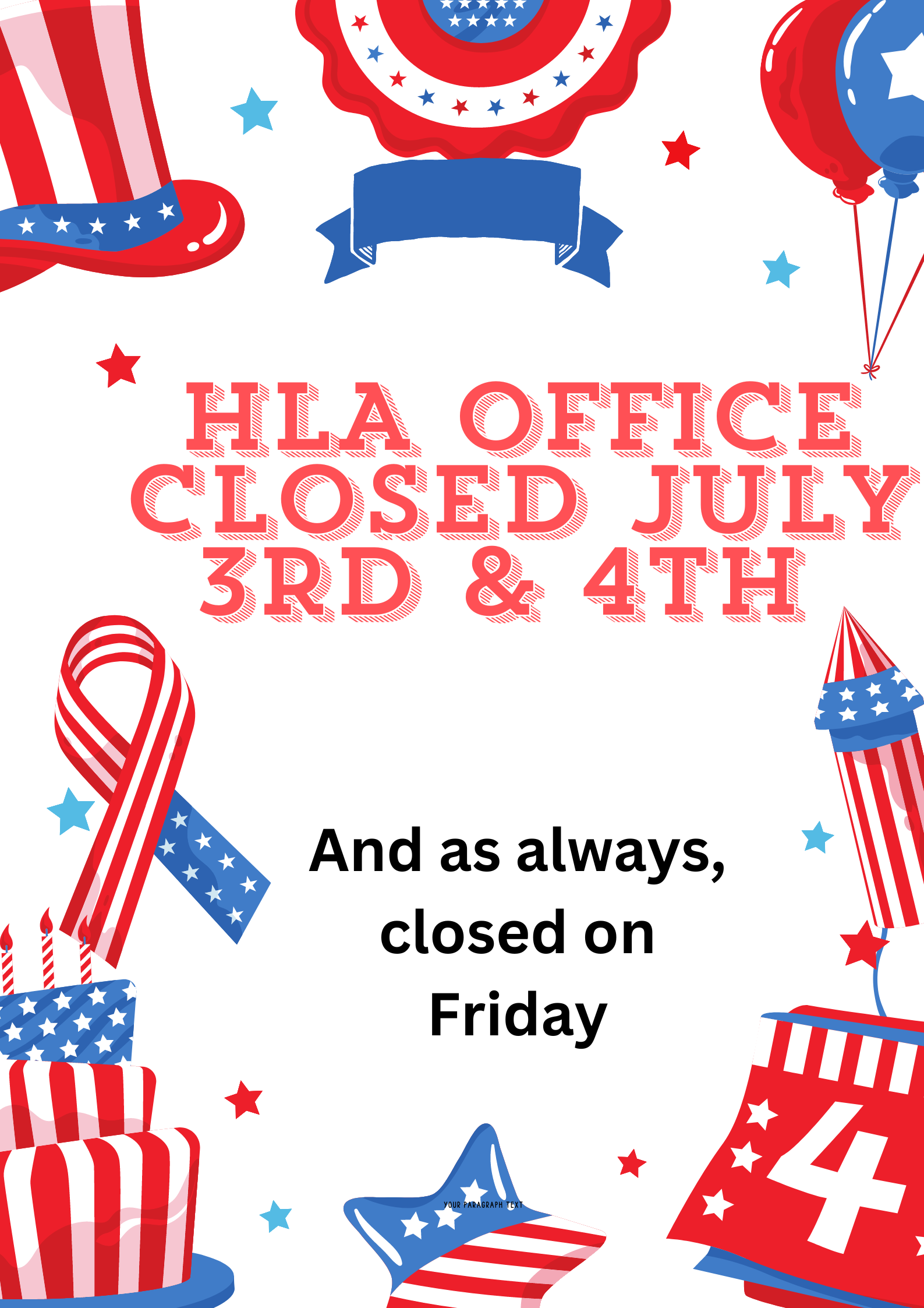 HLA OFFICE CLOSED – JULY 3rd & 4th